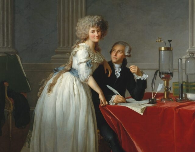 위의 초상화에는 많은 내용이 담겨 있습니다. 1788년, 프랑스 혁명의 시대가 열리기 시작할 때 당시 프랑스에서 가장 유명한 예술가인 Jacques-Louis David (1748–1825)에 의해 그려진 작품이다. 이 초상화의 중심인물은 라부아지에 아내이며, 그녀는 남편과 함께 한 과학적 공헌을 널리 알리는 데 중요한 역할을 했습니다. 남편의 죽음 후에도 미완성된 "Mémoires de chimie"의 자료를 수집하여 1805년에 논문들을 출판했습니다. 이 논문들은 라부아지에의 연구에 대한 최종 해석을 담고 있었습니다. 라부아지 아내는 남편의 발견을 지속적으로 홍보하며 파리의 과학 세계에서 중요한 인물로 남았습니다(출처: Science History Institute).