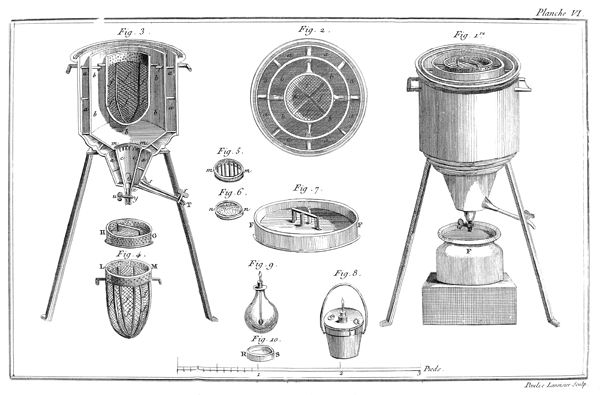 - Fig. 1, Fig. 2: 기체 수집 욕조. 이 장비들은 기체 수집을 위한 물이나 수은이 채워진 욕조입니다. 발생한 기체는 물 또는 수은의 표면 위로 떠올라 다른 용기에 모아지게 됩니다.