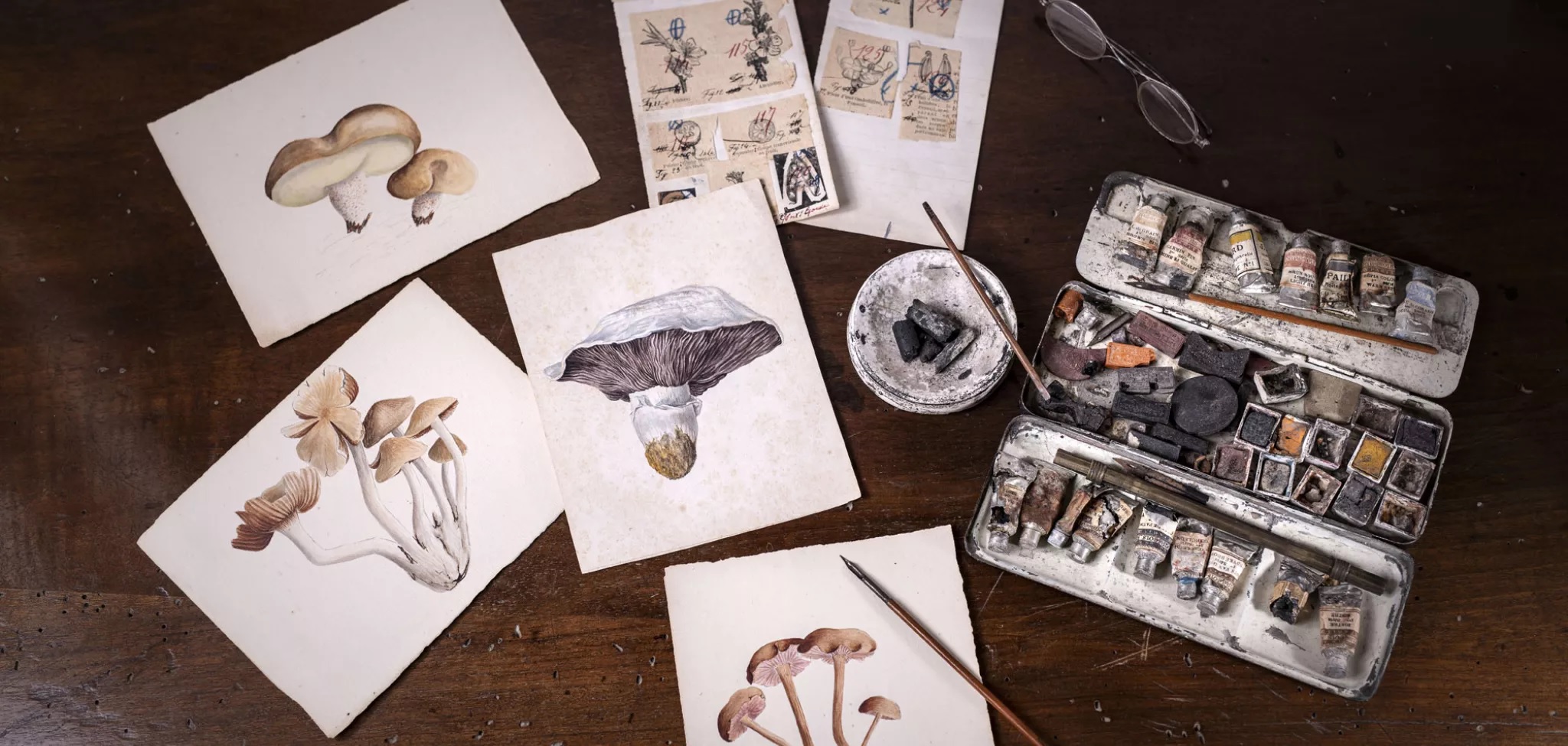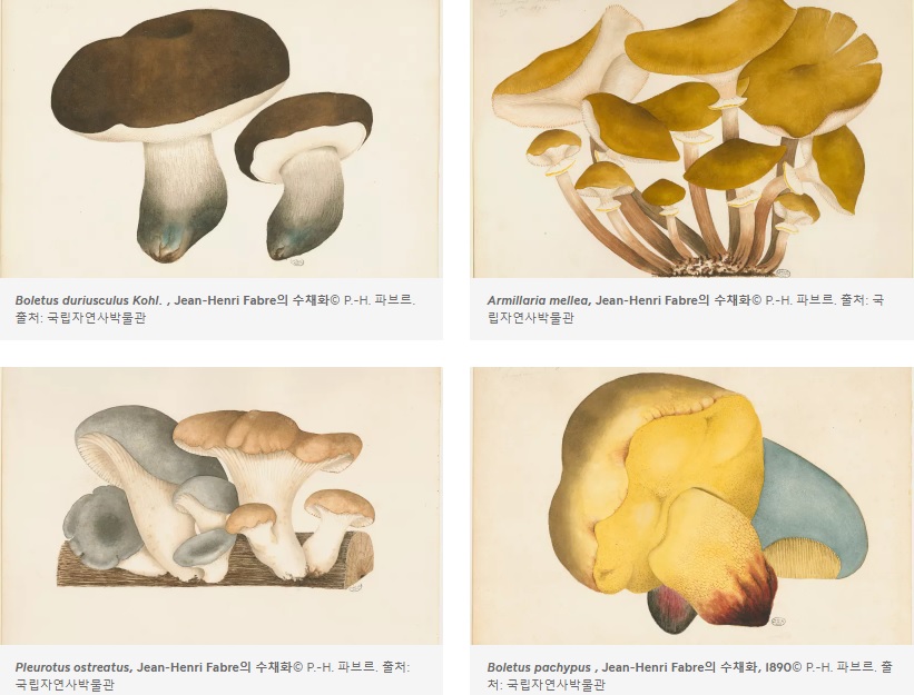 Fabre는 귀중한 식물 표본관에 버섯을 보존할 수 없었기 때문에, 수채화 그리는 법을 배워 이를 해결했습니다. 그는 놀라운 예술적 감각을 발휘하여 섬세하고 정밀한 수채화를 약 650장이나 제작했습니다. 이 그림들은 과학적 정확성과 예술적 아름다움을 겸비하여 그의 식물학 연구를 시각적으로 표현하는 데 중요한 역할을 했습니다.