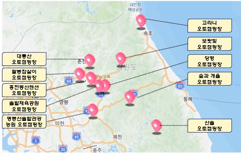 2024년 5월 현재 강원도에 등록된 캠핑장 정보를 바탕으로 만든 오토캠핑장 시리즈의 세 번째입니다. 전화번호, 홈페이지, 예약, 캠핑장 시설(편의시설 추가, 오토캠핑장을글램핑으로 변경 등)은 계속 업데이트 되고 있어 아래 내용과 다를 수 있습니다.