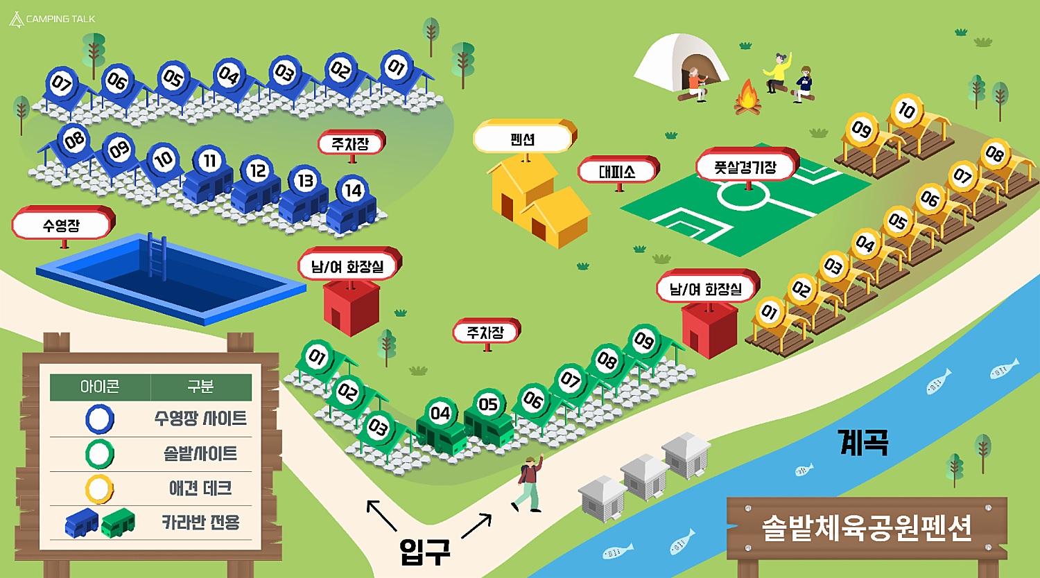 | 산솔오토캠핑장은 강원도 영월군 중동면 태백산로 1616에 위치한 캠핑장입니다. 이곳은 아름다운 자연경관과 깨끗한 시설로 잘 알려져 있습니다. 기본 정보