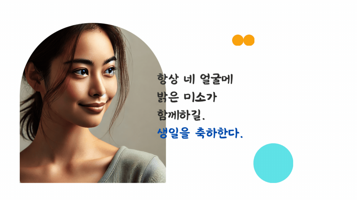- 텍스트 추가: 진심 어린 생일 축하 메시지를 작성합니다. 텍스트의 폰트, 크기, 색상 등을 조정하여 카드의 분위기에 맞게 꾸밉니다.