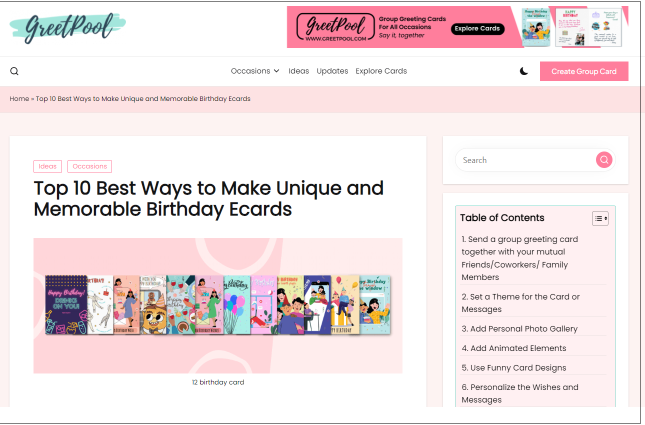 GreetPool은 그룹 카드 제작을 지원하며, 친구나 가족과 함께 디지털 카드를 만들 수 있는 기능을 제공합니다. 블로그에서는 그룹 카드의 장점과 다양한 커스터마이징 옵션, 그리고 사전 예약 기능 등을 설명합니다 (GreetPool Blog).